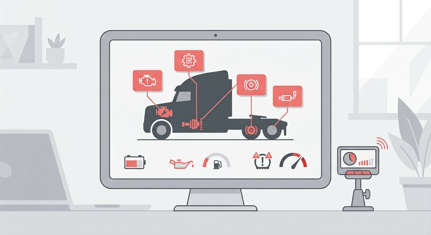 The technical health monitoring system automatically reads diagnostic trouble codes directly from thevehicle's engine and onboard systems via the ELD device.